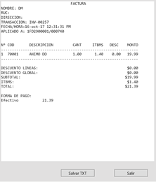 e.2) Factura: Nos permite hacer una reimpresión no fiscal.
