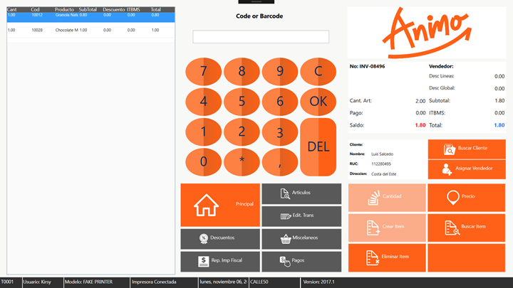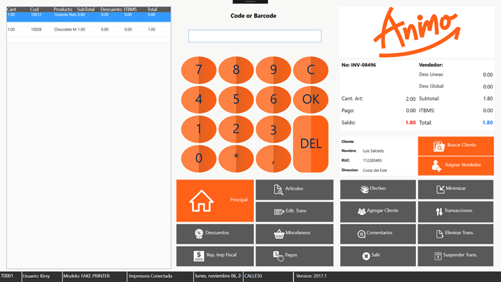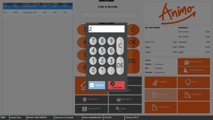 En este ejemplo deseamos cambiar el precio del articulo cuyo código es 10012 y tiene un valor de 0.80$, el primer paso es seleccionar la línea del articulo y luego dentro de la botonera “Artículos” damos click en el botón “Cantidad” y nos abrirá la ventana emergente donde introduciremos nuestro precio deseado a la venta.